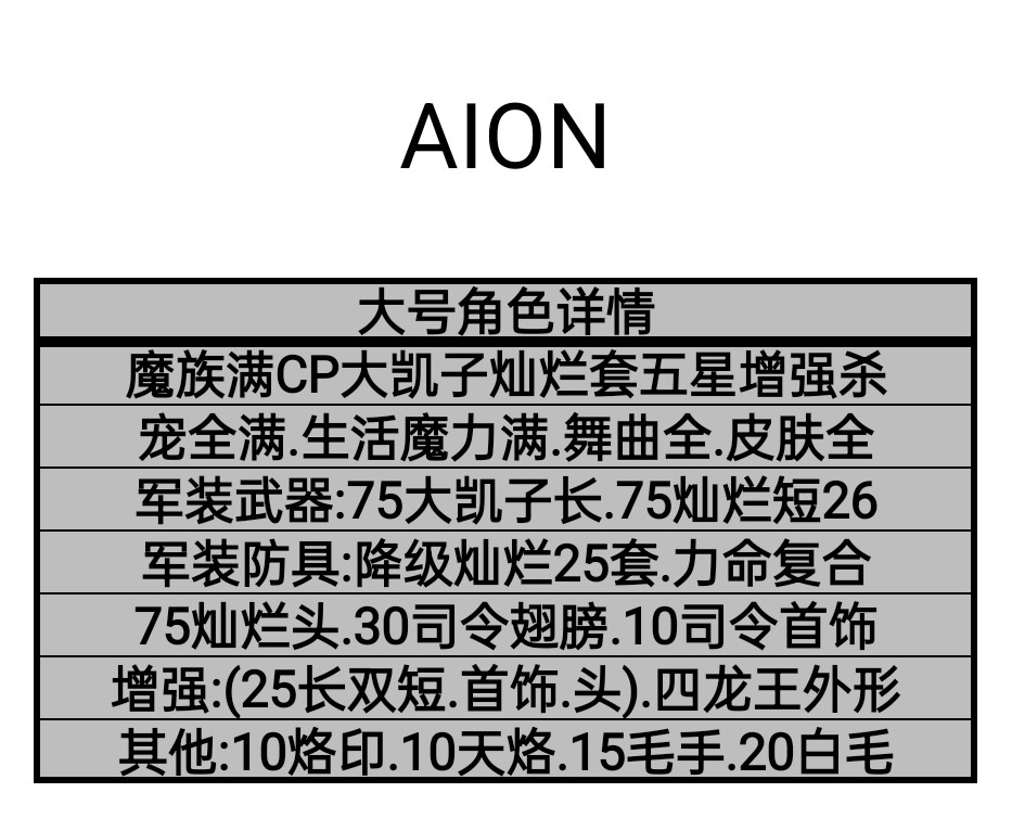 【额外东西】:天烙10套,烙印10套,20白毛101攻击,该有的不该有的都有了