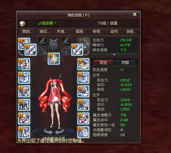【防具强化魔石技能】:司令23套,魔石力命10*12。司令翅膀24净化;增强24套(力量12,手套护肩攻击技能。)