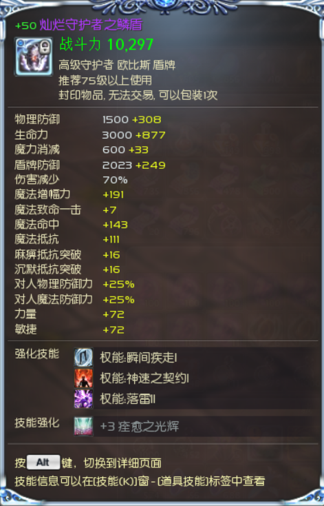 【武器强化神石魔石】:+50灿烂奶盾降75,+30司令锤。全12复合全可交易